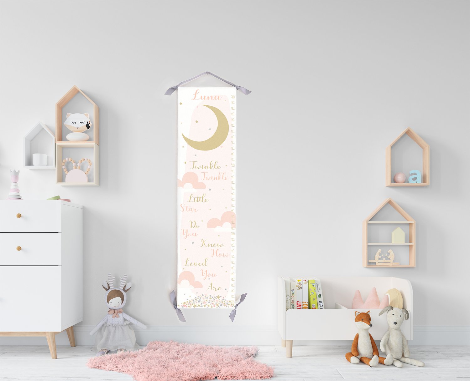 Blush Pink and Gold Phases of the Moon Personalized Canvas Growth Chart